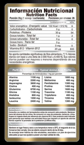 Su fórmula isolate ofrece un perfil nutricional limpio, apto para consumo diario en entrenamientos de fuerza o resistencia.