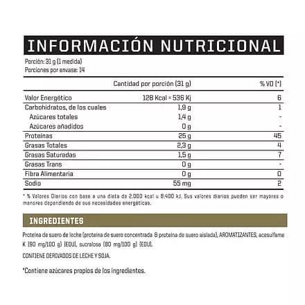 – Proteína de Suero de Leche: Contiene un blend de proteína de suero de leche (WPC y WPI) para una absorción rápida y efectiva.