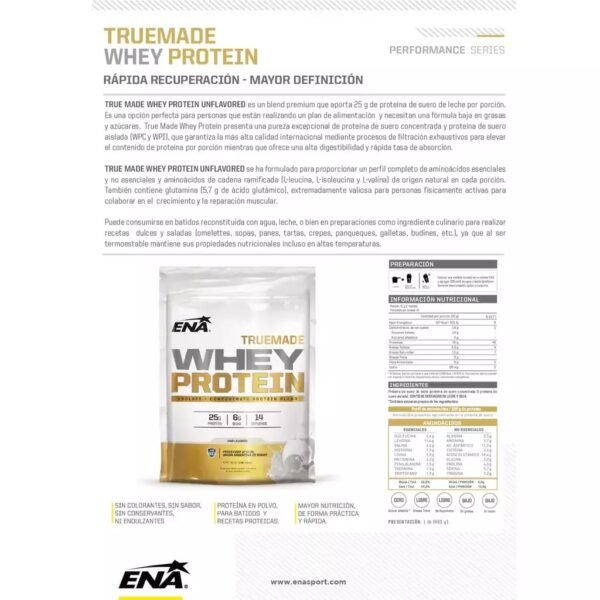 La proteína TrueMade Whey Protein de ENA Sport es una opción de alta calidad para aquellos que buscan aumentar su masa muscular y mejorar su recuperación después del entrenamiento.